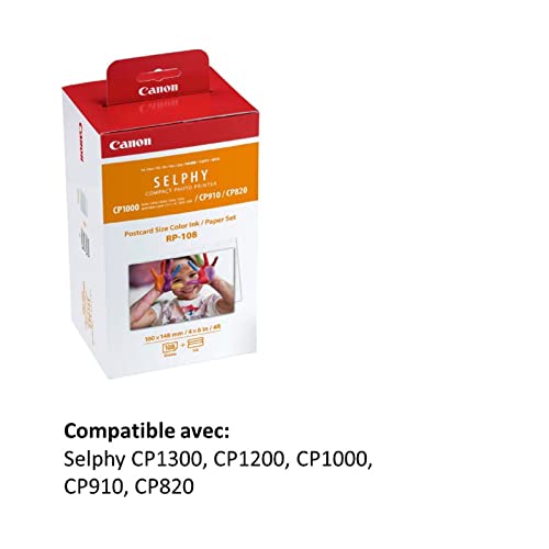 Canon RP-108 Kit 108 tirages (papier + encre) format carte postale 10 x 14,8 cm pour SELPHY CP1300, CP1200, CP1000, CP910, CP820