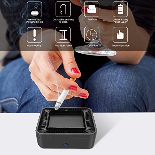 Batterie au lithium rechargeable intégrée, 4000 mA, autonomie de 5 heures. Petit, facile à transporter, il peut être utilisé pour les voyages à domicile, les voyages d’affaires et les voyages d’affaires. Il peut éliminer la fumée usée et l'air pur. Puissant ventilateur turbo - Vitesse en deux étapes, fonctionnement silencieux, nettoyage rapide de la fumée secondaire, ventilation puissante. Facile à enlever et à nettoyer, facile à remplacer le filtre. Filtre à charbon actif. - Il peut éliminer 99,97% de la poussière, du pollen, de la fumée, des odeurs, des spores de moisissures et des poils d'animaux; Filtrer les particules de 0,3 μm et plus, filtrer la pollution de l'air de pm2,5