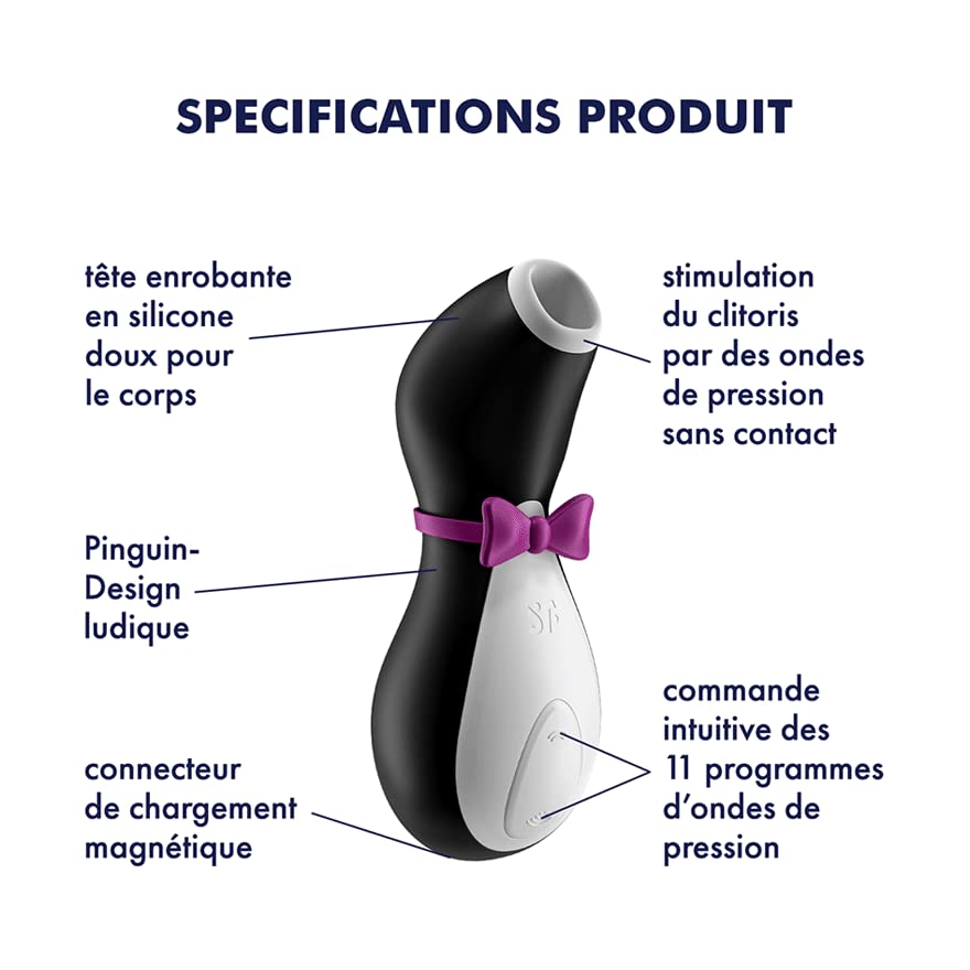 - 👄 TECHNOLOGIE : notre vibrateur d'application Satisfyer Pro Penguin - Next Generation te permet d'obtenir des orgasmes clitoridiens multiples et inoubliables grâce à sa nouvelle technologie d'aspiration révolutionnaire.